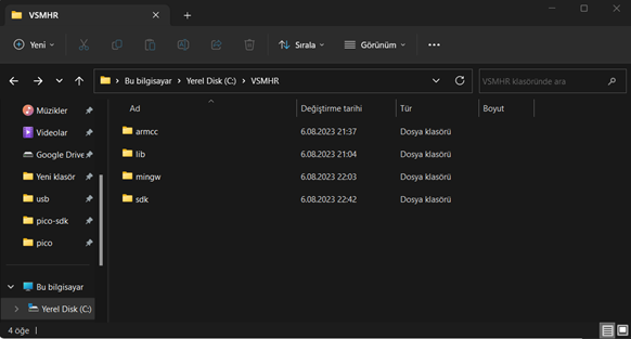 Artık RP2040 işlemcisinde C/C++ programları geliştirmek için gerekli tüm derleme araçlarını kurduk. Geriye sadece birkaç ortam değişkeni güncellemesi kaldı. Şimdi o adıma geçelim.