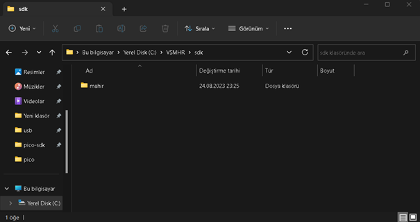 Öncelikle C:\VSMHR\sdk dizinine gidip bu dizin içerisinde “mahir” adlı bir klasör oluşturun.