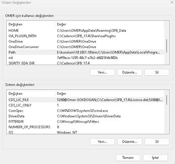 Ardından kontrol amaçlı Sistem Değişkenleri kısmından PATH’i seçip Düzenle diyip