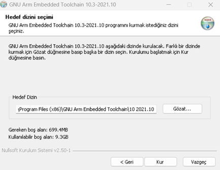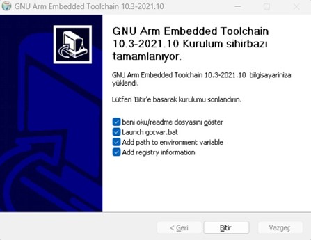 Böylece GNU Arm Embedded Toolchain kurulumunu bitirmiş olduk. Şimdi diğer adıma geçelim.