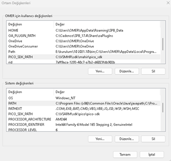 Bu işlemleri yaptıktan sonra “Kullanıcı Değişkeni” kısmına PICO_SDK_PATH oluşması lazım.